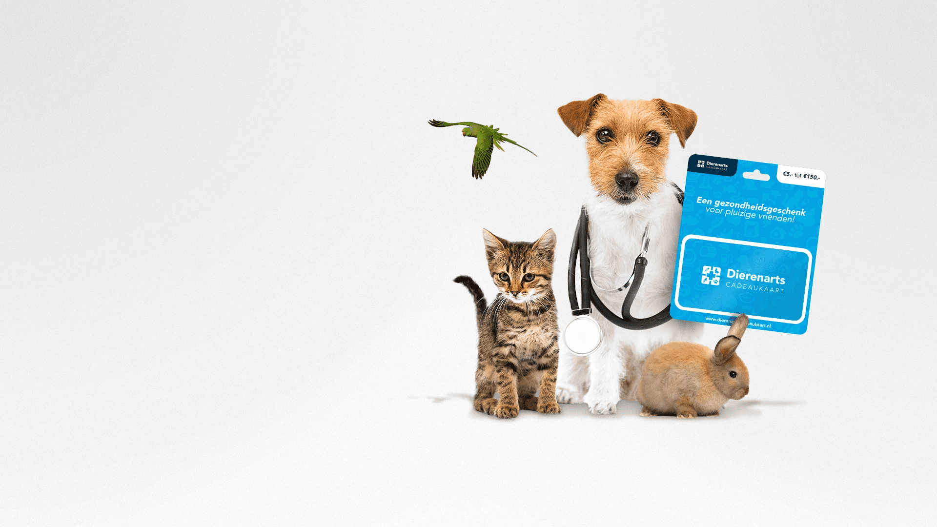 De Dierenarts Cadeaukaart is een prachtig geschenk, waarmee mensen een dierenliefhebber in hun omgeving een steuntje in de rug kunnen bieden. Het doel van deze cadeaukaart is het toegankelijk maken van hoogwaardige dierenartsenzorg voor iedereen, want ieder dier verdient de juiste zorg! Wilt u met uw dierenartsenpraktijk onderdeel uitmaken van dit mooie initiatief? Lees via de button meer over partner worden en registreer u direct!